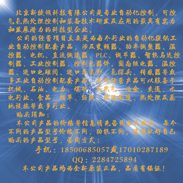 主营:神港、岛电、岛通、希曼顿、台基全系列以及FUJI、基恩士、欧陆、欧姆龙、堡盟等,有温控表、模块、传感器、调整器等。公司所有产品都是全新原装的。请放心购买,任何一台表都可以去计量院检测。